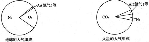 22.下图分别是地球和火星的大气组成(体积分数)示意图。下列说法正确的是 ( )