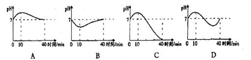7.人体口腔内唾液的pH通常约为7,在进食过程的最初10分钟,酸性逐渐增强,之后酸性逐渐减弱,至40分钟趋于正常。与上述事实最接近的图像是