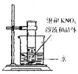 1.常温下,向盛有几小粒硝酸钾晶体的试管中,加入饱和硝酸钾溶液,并固定在盛有水的烧杯中(如下图所示)。