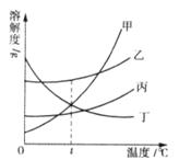 15.下图是甲、乙、丙、丁四种物质的溶解度曲线。温度为