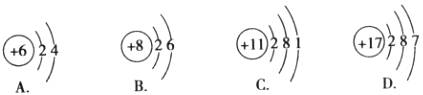 6.下列各原子结构示意图中,表示金属原子的是( )