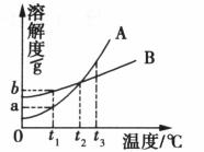 (2)将t2℃时A、B的饱和溶液分别升温到t3℃,A溶液的溶质质量分数 (填“大于”、“小于”或“等于”)B溶液的溶质质量分数(假设升温过程中水的质量没有变化)。