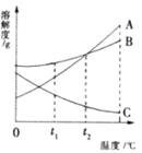 18.(6分)下图为A、B、C三种固体物质在水中的溶解度曲线示意图,请回答有关问题。