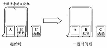 20.A、B、C三只小烧杯内分别依次盛有一定体积的浓氨水、酚酞溶液、酚酞溶液,按下图所示进行探究活动,不能得到的结论是