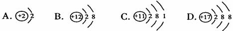 9.下列粒子结构示意图中表示阴离子的是 ( )