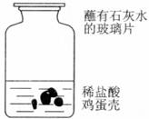 B.若玻璃片上的石灰水变浑浊,说明鸡蛋壳里含有CO32-
