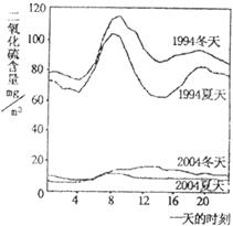 16.下图是1994和2004年某城市的一天各个时刻监测到的空气中二氧化硫的含量,下列说法不正确的是