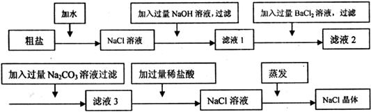 在实验操作中,通常需要加入过量的除杂试剂,有一化学课外活动小组为了除去粗盐中的杂质,设计了下列实验步骤:
