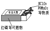 27.安全火柴梗头及火柴盒侧面的物质如下图所示,当两者摩擦时,听到嚓一声,看到了火焰、白烟,闻到了刺激性气味,这是因为生热点燃红磷,火柴梗(主要成分为碳)着火。你知道划火柴过程中发生了什么反应吗?请用化学反应方程式表示: