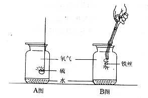 29.A、B两图分别表示硫、铁丝在氧气中燃烧的示意图。