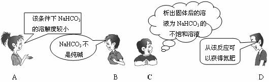 9.“NaCl+CO2+NH3+H2O=NaHCO3↓+NH4Cl”是著名的“侯氏制碱法”的重要反应。下面是4位同学对该反应涉及的有关知识发表的部分见解。其中不正确的是