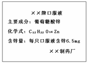 29.(3分)锌片、是人体健康必需的元素,锌缺乏容易造成发育障碍,易患异食癖等病症,使人体免疫功能低下。市售的葡萄糖酸锌口服液对治疗锌缺乏症具有较好的疗效。下图是某品牌葡萄糖酸锌口服液的标签,请根据标签信息回答: