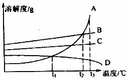 26.(7分)下图是A、B、C、D四种物质的溶解度曲线图,根据此图回答: