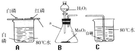 (2)B装置中a仪器的名称为____________在使用组装好的B装置前首先应该进行的操作是_________________________然后加入药品并将B和C装置连接,滴人双氧水,B装置中反应的化学方程式为_________________其中MnO2的作用是____________C装置中水下的白磷燃烧。
