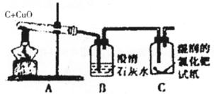 2Cu+CO2↑,他联想到单质碳的一些化学性质,认为在该实验中还可能会有CO产生。查阅资料:CO气体能使湿润的黄色氯化钯试纸变蓝色。