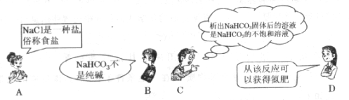 (3)“侯式制碱法”生产过程涉及的化学反应如下: