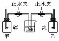 14.如图所示,等体积的甲乙两集气瓶内充满空气,烧杯内盛有足量的澄清的石灰水,燃烧匙内分别盛有过量的红磷和木炭粉,点燃使其充分反应(不考虑燃烧产生CO的现象),冷却至室温,打开止水夹,最终出现的现象的是:( )