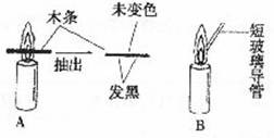 (1)点燃蜡烛,将一根小木条迅速平放在火焰中,约1分钟后取出,现象如图A所示,这证明焰心_____________。