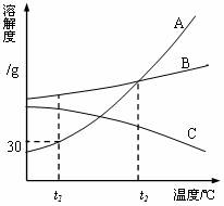 19.(6分)下图是A、B、C三种物质的溶解度曲线,据图回答: