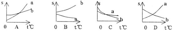 8.在室温下,两种物质a、b的饱和溶液,升高温度后,a溶液有晶体析出,而b溶液还可溶解晶体,下列能正确表示两物质溶解度(s)曲线的是( )