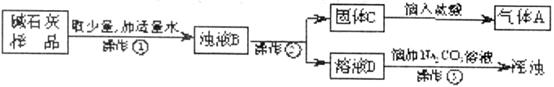 图中操作①、②都要用到玻璃棒,其中操作①玻璃棒的作用是______________________;从操作③的现象分析,溶液D中含有的物质是____________;写出溶液D与Na2CO3溶液反应的化学方程式__________________________,反应类型为_______________。