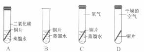[设计与实验] 借鉴“铁钉锈蚀条件的探究”实验,小林设计了“铜片锈蚀条件的探究”实验如图所示: