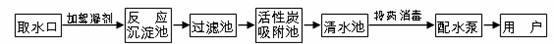 (1)上图吸附池内的活性炭起 作用,经沉淀、过滤等净化处理后所得的水
