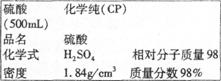 27.(10分)实验室中浓硫酸的商标如图所示,根据有关信息计算:(精确到0.1)