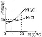 A.20℃时,18gNH4 C1晶体加入到50g水中,搅拌后将全部溶解,得到饱和溶液