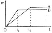 29.(2分)将质量相等的A、B两块金属,分别放人溶质质量分数相同的足量稀盐酸中,生成氢气的质量(m)与反应时间(t)的关系如下图所示(产物A、B两种元素的化合价相同),分析下图,填空(“>”或“<”)