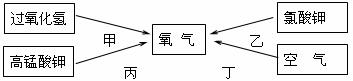 ,化学实验的绿色化就是以绿色化学的理念和原则来指导实验工作。从实现原料和反应过程的绿色化考虑,你认为在中学化学实验室中,甲、乙、丙三种制取氧气的途径中, (填“甲”、“乙”或“丙”)途径更体现化学实验的绿色化追求。