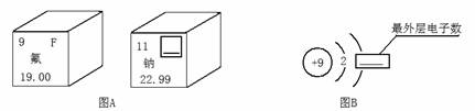 21.(5分) 图A是两种元素在元素周期表中的信息,图B是氟原子的原子结构示意图。