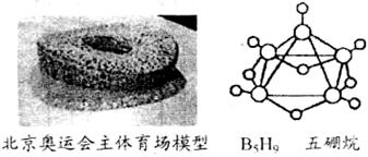 13.2008年北京奥运会主体育场的外形好似“鸟巢”(The Bird Nest),有一类物质也好似鸟巢,如化学式是B5H9的五硼烷。下列有关五硼烷的说法错误的是