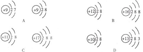 14.下列各组粒子结构示意图中,前者表示阳离子,后者表示阴离子的是