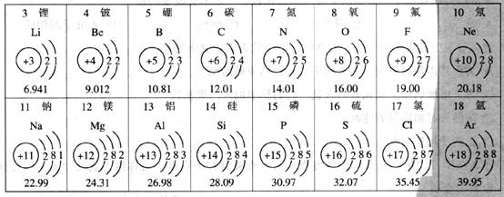 (3)从上图中我们发现:随着原子序数的递增,其原子结构(或元素的性质)呈现的变化具有一定的规律。下面是天逸同学在学习时寻找出图中的一些变化规律,其中正确的是____________________。(填a、b、…)