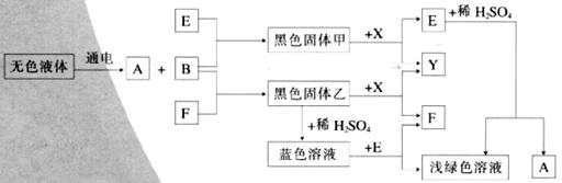 已知高温下CO能与多种金属氧化物反应生成相应的金属和CO2。下列关系图中A、B、X、Y均为无色气体,E、F为常见金属。问: