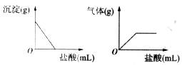 13.有一包白色同体,可能含有Na2SO4、Na2CO3、BaCl2、NaOH中的一种或几种。取样溶于水,有白色沉淀产生;过滤后向沉淀中滴加盐酸,沉淀的量、产生气体的量与加入盐酸体积的关系如图所示。由此推断白色固体中 ( )