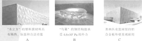 (1)北京奥运场馆备受世人瞩目。下列介绍的材料中,属于有机合成材料的是______ (填字母,下同);
