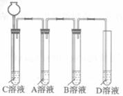 第二步:依据下图装置进行实验,其中夹持固定装置已略去。从长颈漏斗加入盐酸,可以观察到C溶液中有气泡产生,A溶液中有白色沉淀生成,B、D溶液均无明显变化。