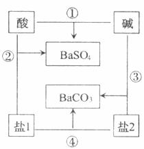(1)写出图示中相应物质的化学式:酸_______;碱_______;盐1_______;盐2_______。