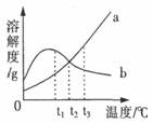 D.将a、b两种物质的饱和溶液从t3℃降温至t1℃,a有晶体析出,b无晶体析出