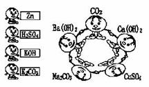 19.物质王国的“小朋友”在做游戏,五位“小朋友”手拉手围成一圈(如下图所示),要求相邻的“小朋友”之间必须能互相“配合”(即必须能发生化学反应),他们才能将游戏进行下去。场外还有四位替补“队员”。下列有关说法正确的是