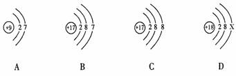 17.(12分)下图中的①、②是氟元素、钙元素在元素周期表中的信息,A、B、C、D是四种粒子的结构示意图。