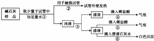由上述实验说明,实验室中“碱石灰”应______保存;操作③中玻棒的作用是__________。