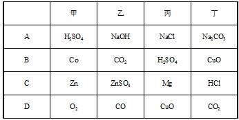 14.下图中“--”表示相连的物质间在一定条件下可以反应,“→”表示甲在一定条件下可以转化为乙。下面四组选项中,符合下图要求的是