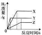 18.(2分)把相同体积、相同质量分数的稀盐酸,分别滴到等质量、颗粒大小相同的X、Y、Z三种较活泼金属中,生成H2的质量与反应时间的关系如下图所示。这三种金属的活动性顺序为________;假如X、Y、Z都是+2价金属,则相对原子质量由大到小的顺序为________。