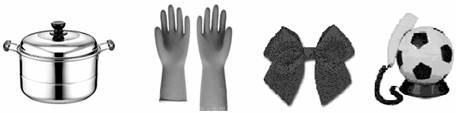 ①不锈钢炊具 ②合成橡胶手套 ③纯棉饰品 ④塑料外壳电话