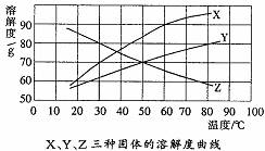 ④50℃时,三种物质X、Y、Z的溶解度依次减小