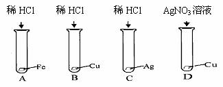 24.为验证Fe、Cu、Ag三种金属的活动性是依次减弱的,某化学兴趣小组设计了如下图所示的四个实验。其中不必进行的是