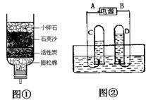 (2)小明要净化收集的雨水,自制了一个简易净水器(如下图①所示),其中小卵石、石英沙和膨松棉的作用是 。